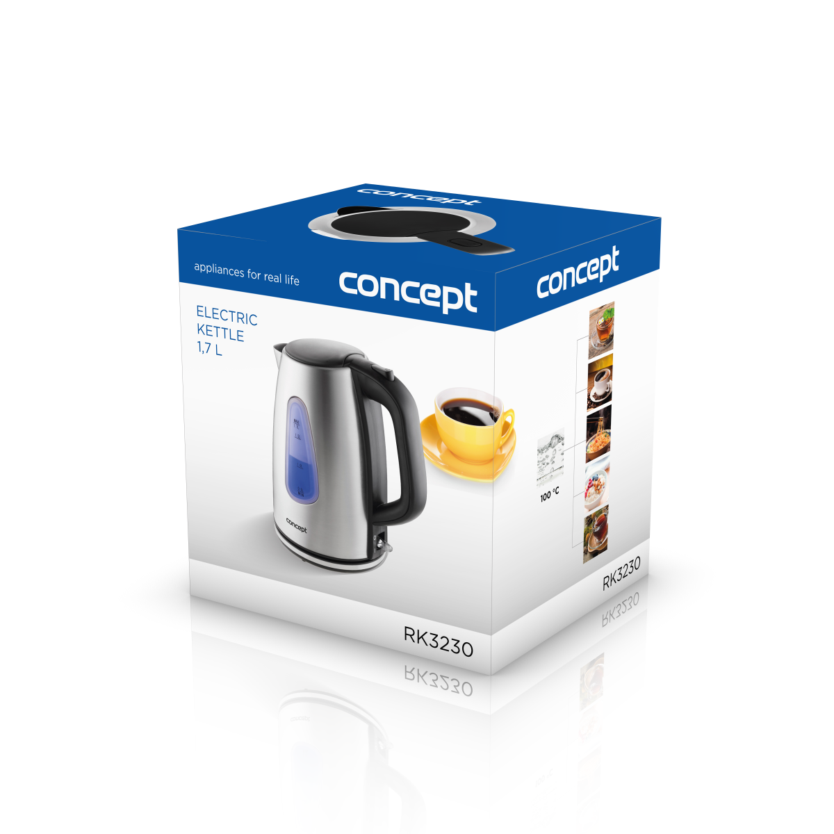 Dzięki pojemności 1,7 litra możesz ugotować herbatę dla całej rodziny. Czajnik wykonany jest z wysokiej jakości stali nierdzewnej. Ten specjalny materiał jest bezpieczny dla zdrowia. RK3230 jest wyposażony w podwójny system bezpieczeństwa. Zapewni to wyłączenie czajnika po zagotowaniu wody. Czy zapomniałeś wlać wodę do czajnika? Nie ma problemu, czajnik wyłącza się i można go ponownie użyć po ostygnięciu.
