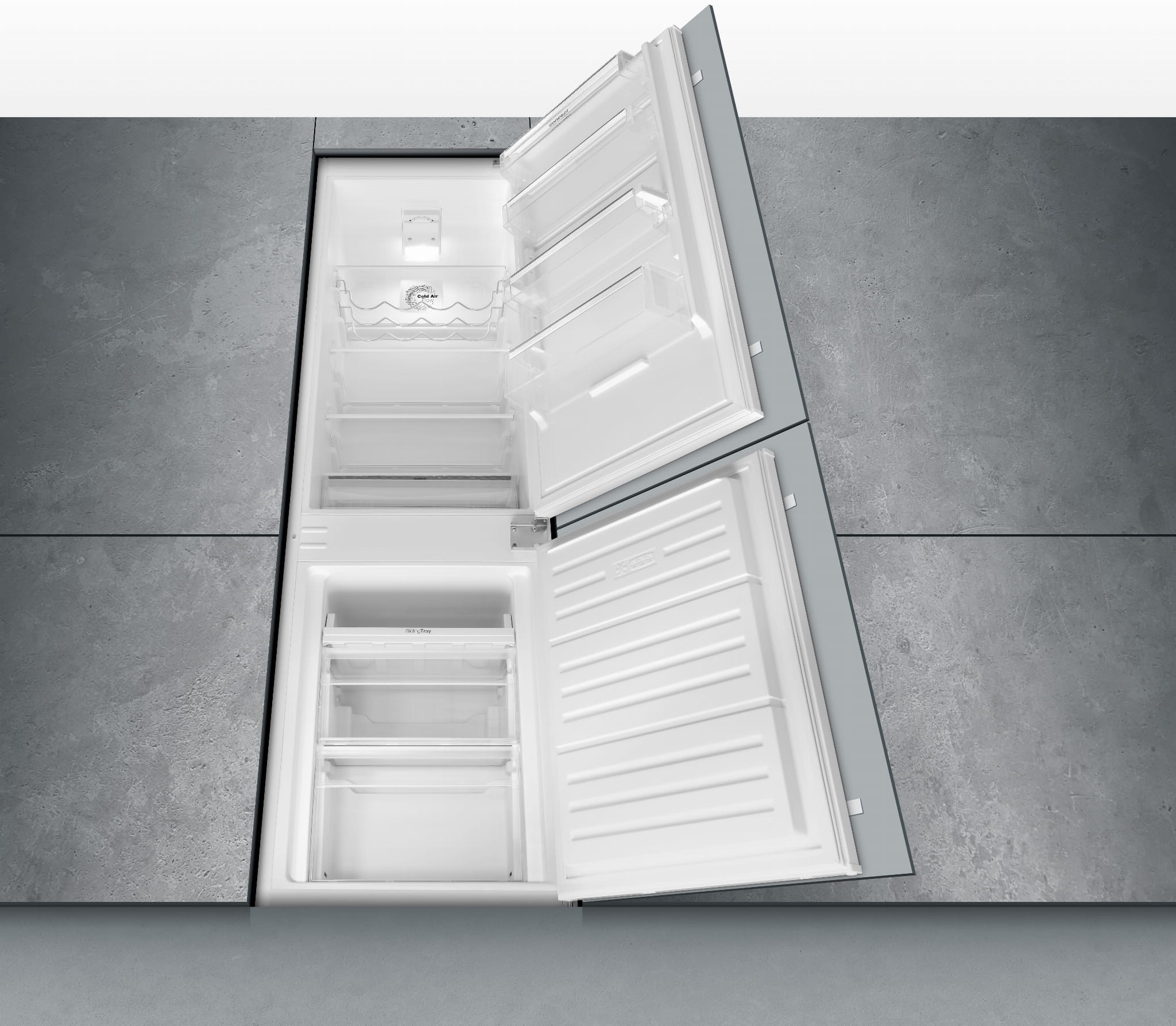 Aby wysunąć szuflady lodówki i zamrażarki wystarczy otworzyć drzwi tylko pod kątem 90°. Dzięki temu lodówkę można ustawić także blisko ściany.