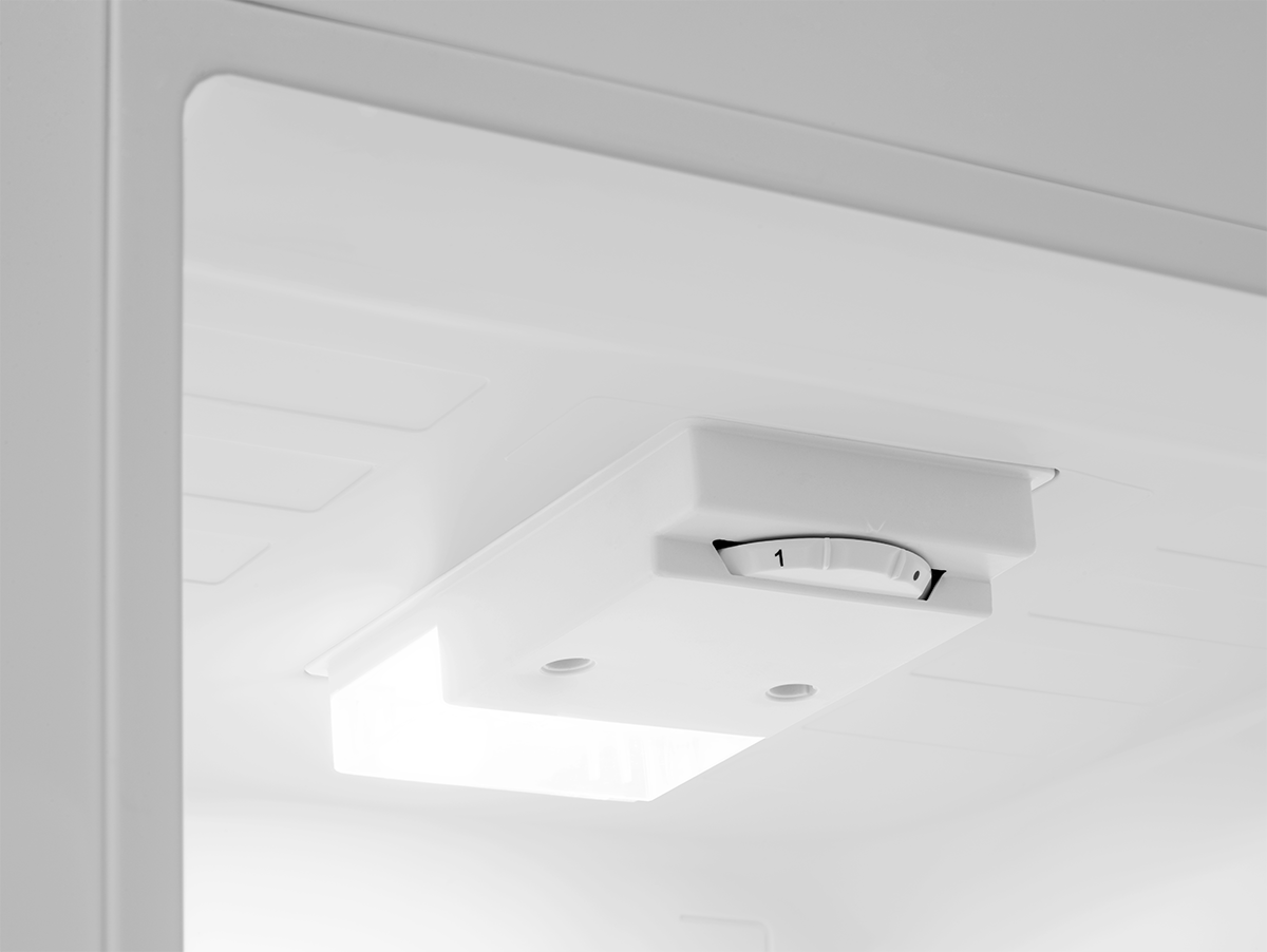 Nowoczesne oświetlenie LED doskonale oświetla wnętrze lodówki. W porównaniu z klasyczną żarówką jest znacznie bardziej ekonomiczne i jednocześnie delikatne dla przechowywanej żywności. Dodatkowo, dzięki zerowej mocy cieplnej, temperatura wewnątrz lodówki nie wzrasta.