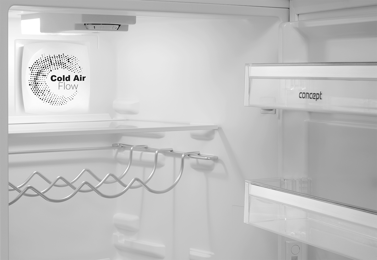 Lodówka do zabudowy Concept LKV5560 przeznaczona jest do montażu w zabudowie kuchennej. Jest to połączenie lodówki i zamrażarki, która znajduje się w dolnej części urządzenia. Główną zaletą lodówki do zabudowy jest to, że idealnie komponuje się z każdą zabudową kuchenną. Model LKV5560 oferuje całkowitą pojemność 243 l, co jest wystarczające dla potrzeb całej rodziny. Można nią łatwo sterować za pomocą pokrętła umieszczonego we wnętrzu lodówki.
