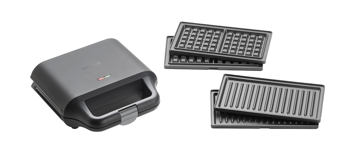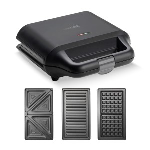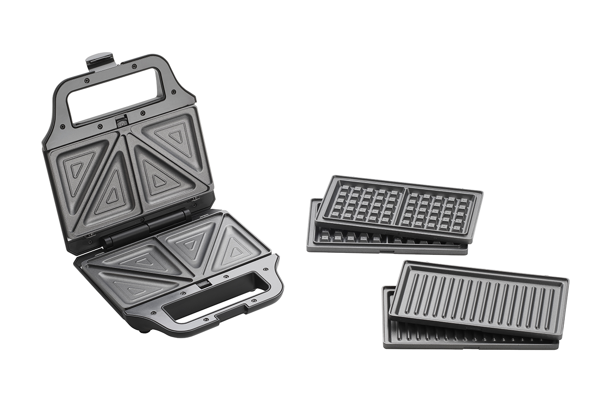 Wielofunkcyjny opiekacz do kanapek SV3054 w eleganckim czarnym designie pomoże Ci szybko przygotować śniadanie, przekąski i kolację. Dzięki trzem wymiennym płytom w mgnieniu oka przygotujesz chrupiące tosty, pachnące gofry czy grillowane przysmaki. Musisz tylko wybrać to, na co masz ochotę. Otrzymujesz trzech praktycznych pomocników w jednym.